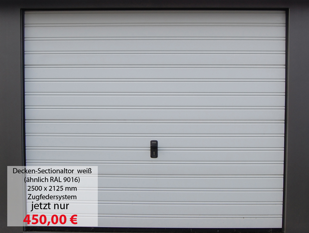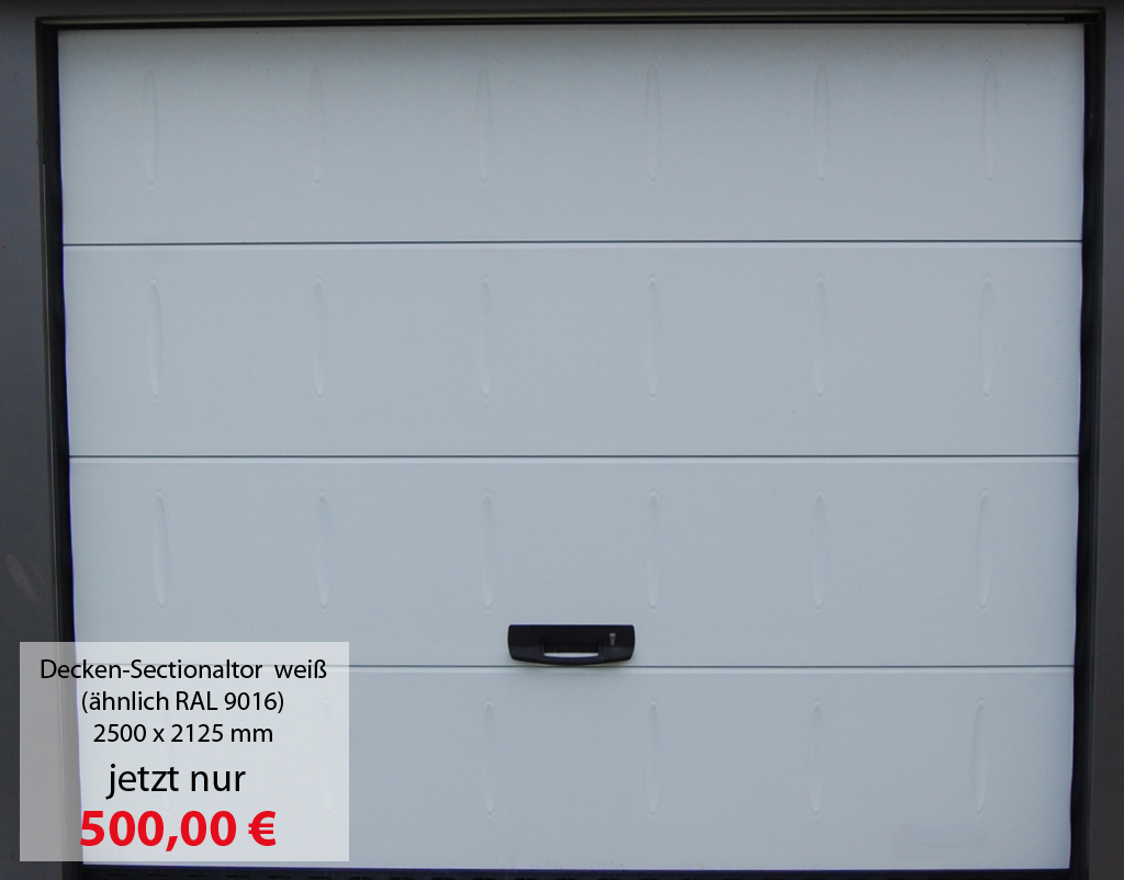 Momentan haben wir einige äußerst interessante Ausstellungsstücke im Abverkauf. Ihre Durchfahrtsmaße passen? Dann greifen Sie zu. Günstiger werden Sie ein solches Tor nicht finden. Fragen? Rufen Sie uns einfach an.
